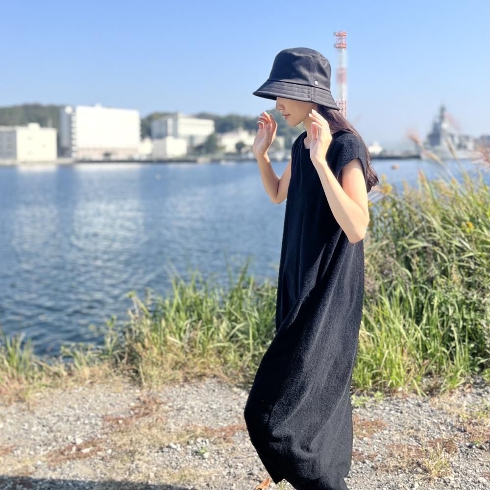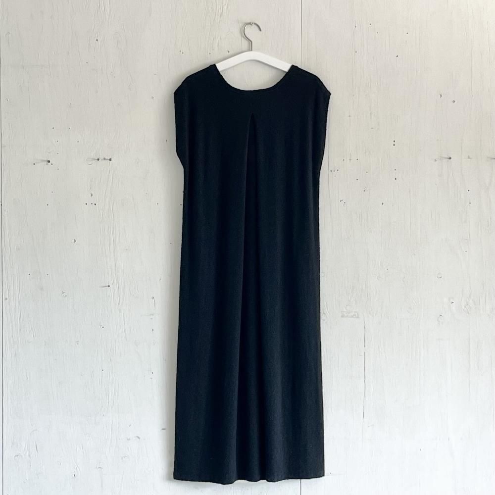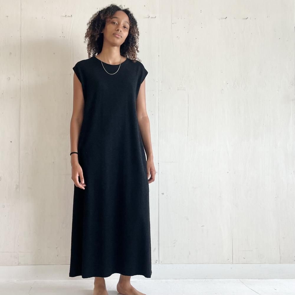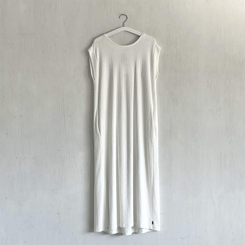 生地の表面が立体的で、さざ波のようにも見えるパイル生地(タオル地)を使用したロングワンピース。