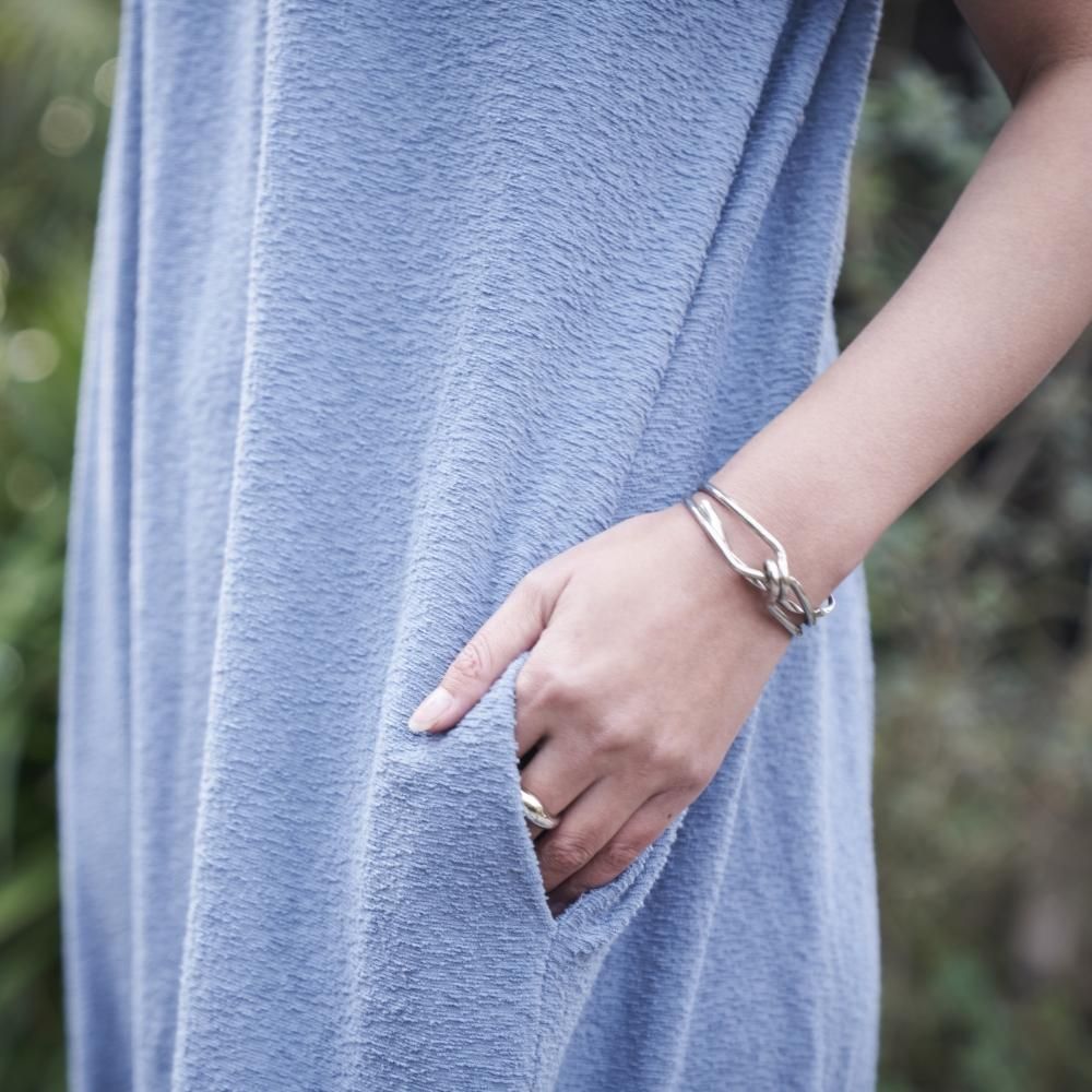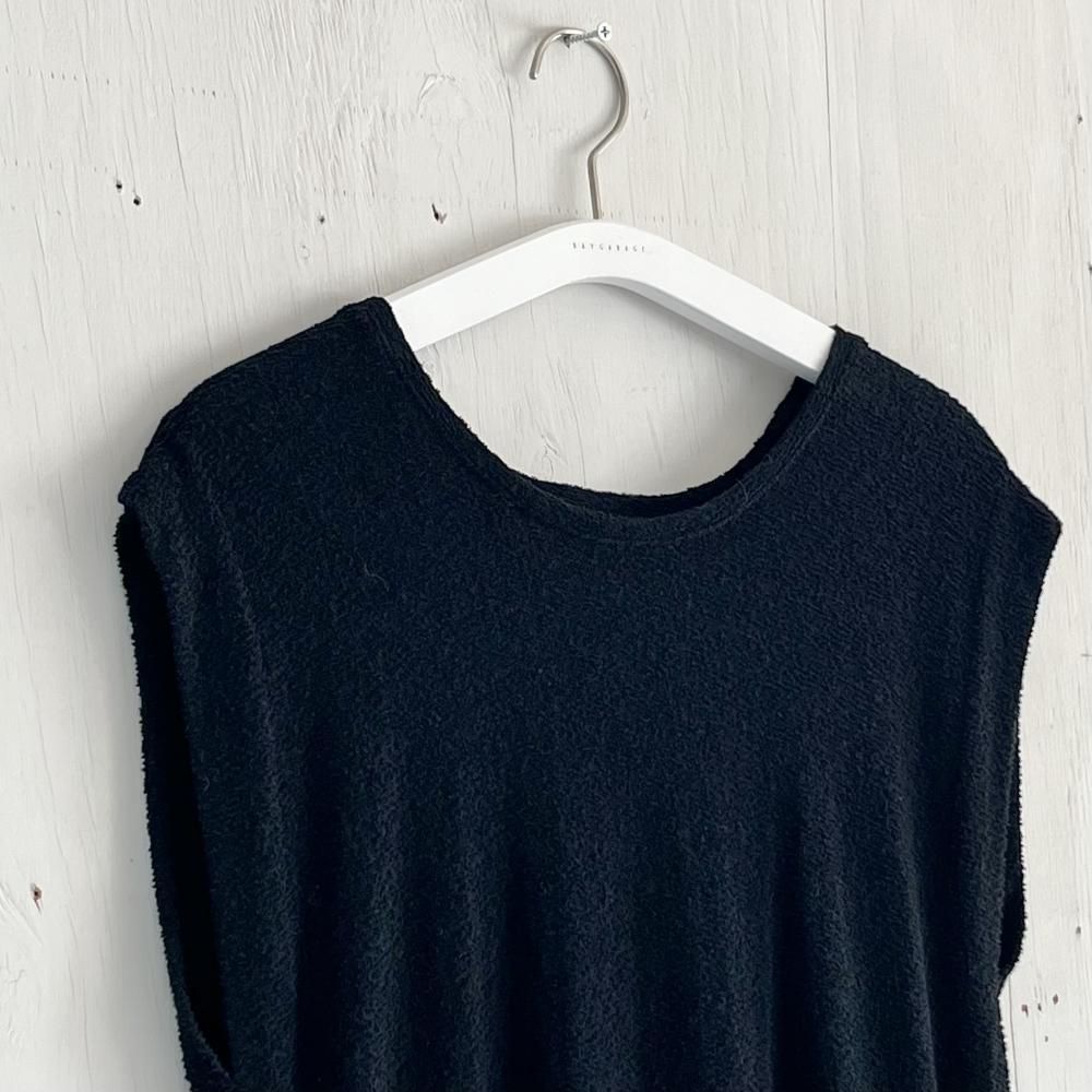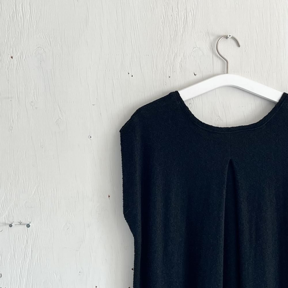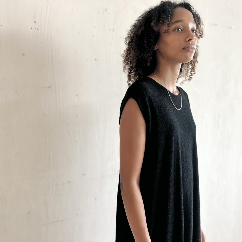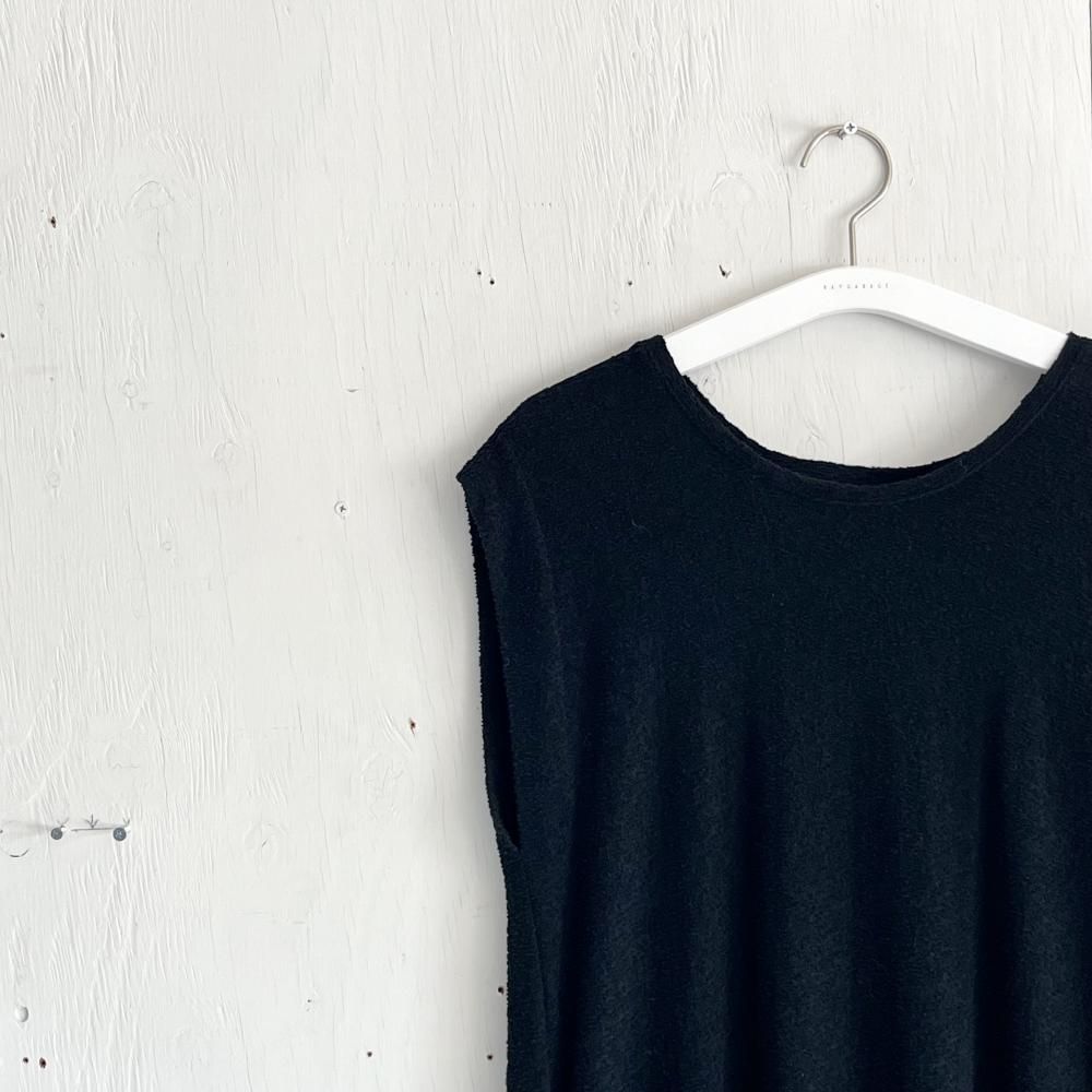生地の表面が立体的で、さざ波のようにも見えるパイル生地(タオル地)を使用したロングワンピース。