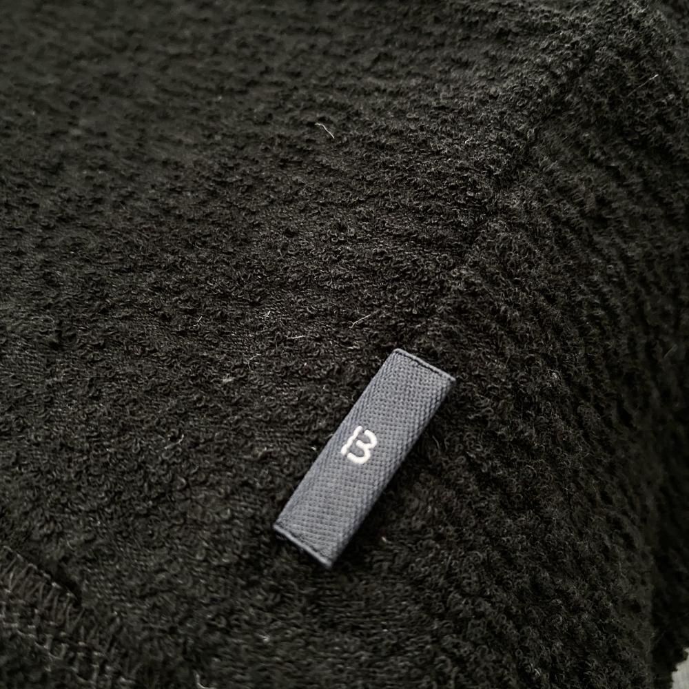 より良い肌触りを体感できるよう、内側のタグは一切使わず、品質表示は全てプリントに。ネイビーのブランドタグも裾に配置しました。