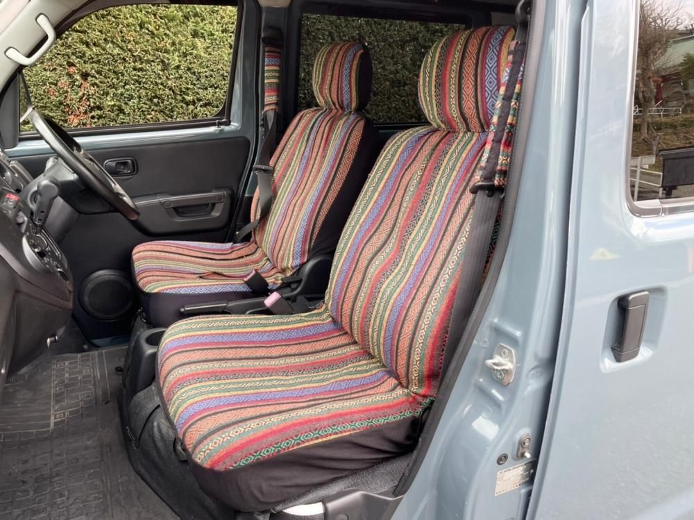 海を連想させるアンヴィルグレー/ホワイトのツートンに全塗装され、内装は黒革調シートカバーが組み合わされております。(ご希望でしたら、エスニック調のシートカバーもお付け致します。)