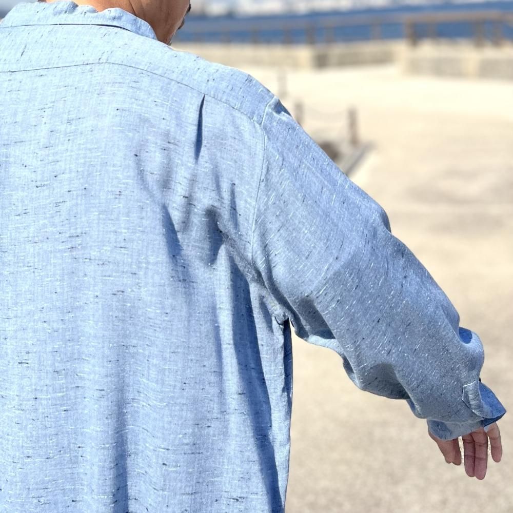 グレーベースにサックスとブラックのネップが織り込まれたシックなカラーリング。