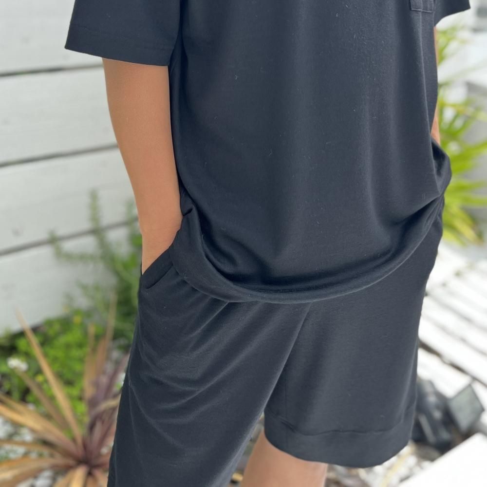 メリノウール100%を使用した極上な着心地のイージーワイドショーツ。