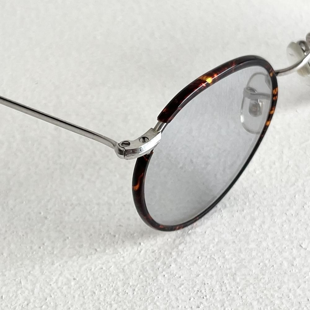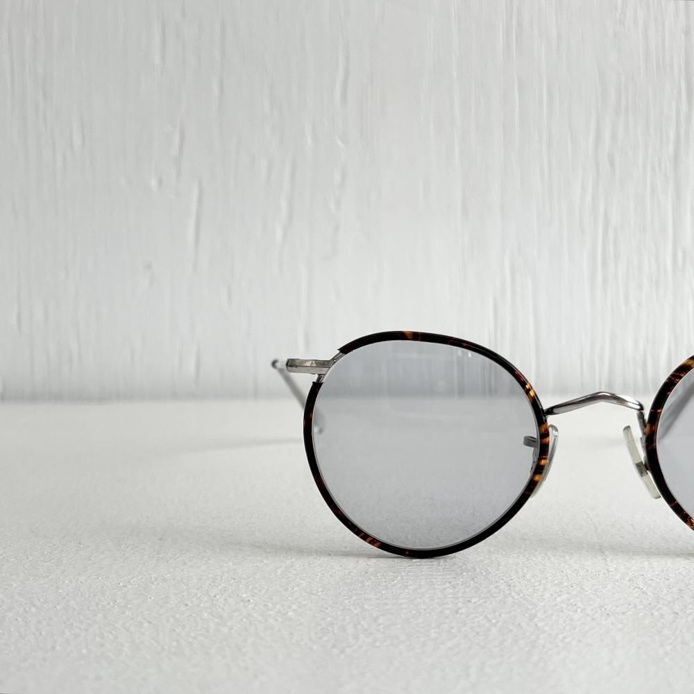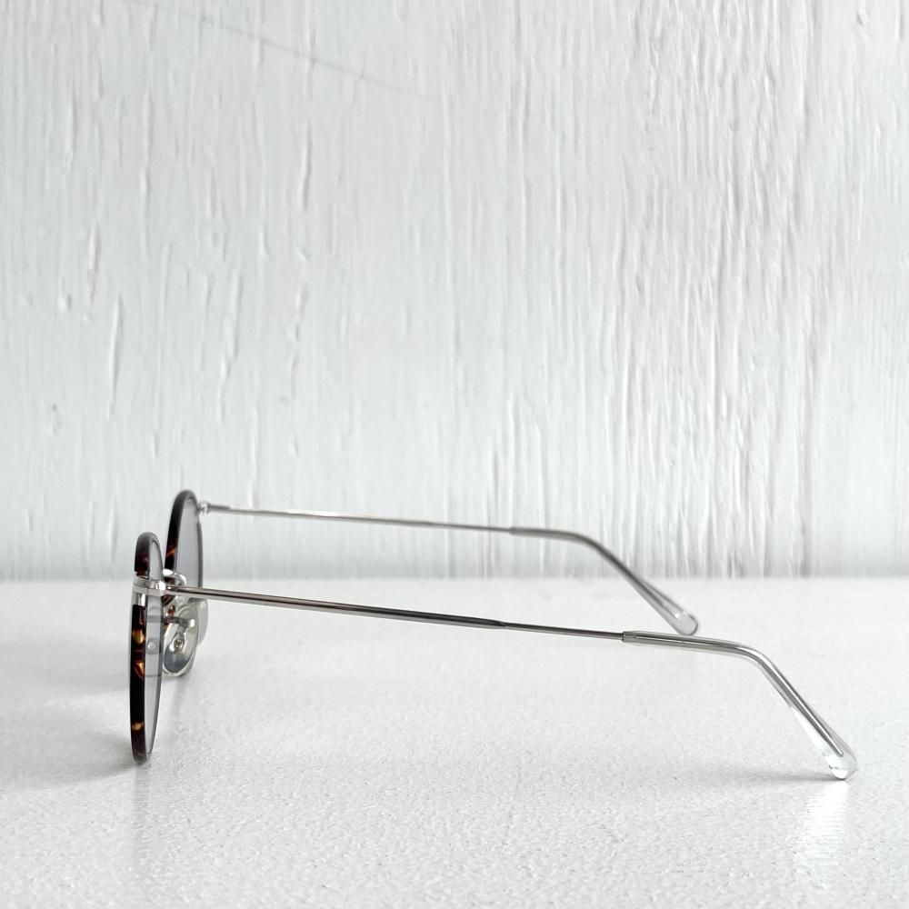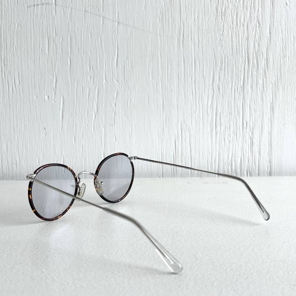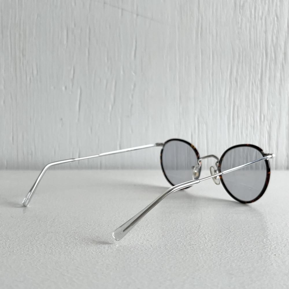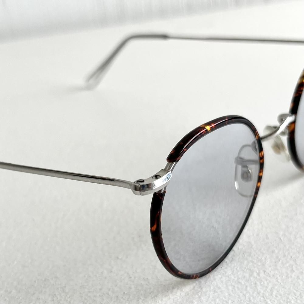 レンズ幅43mmのサイズでフレームの鼈甲に合わせたグレーレンズはさわやかな印象で肌馴染みも良く、男女問わずにかけられます。