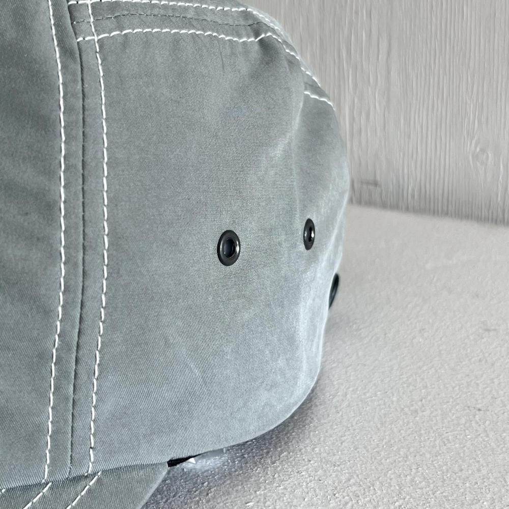 6パネルの様な深さのある被り心地とで、サイドからはジェットキャップのような見た目のデザイン。